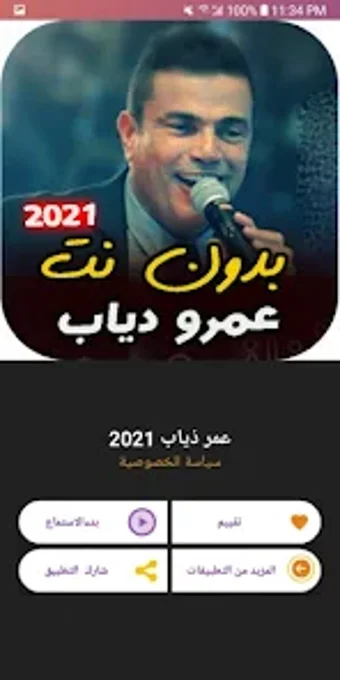 De bästa gamla sångerna av Amr Diab fungerar på Android 9.0 eller högre. Den nuvarande versionen av appen är 5.0 och du kan få den endast på arabiska.
